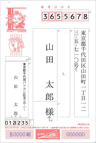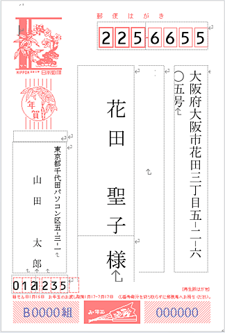 年賀状の宛名面の印刷プレビューを確認し問題がないかチェックします。
