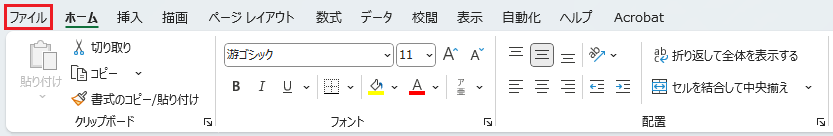 🥉手順②:Excelで住所録を作成しましたら、Excelの【ファイル】タブを選択します。