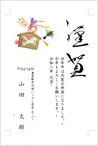 Wordの、はがき作成機能を使用して『年賀状』や『はがき』の文面を作成することができます。