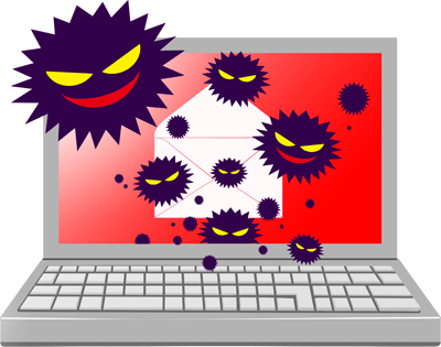 コンピュターウイルスの主な感染経路は、メールの添付ファイル、悪意のあるWebサイトの閲覧、不正なアプリやファイルのダウンロードを行うことでコンピューターに侵入し、システムの破壊やファイルの破損、個人情報の流出などの被害を起こします。