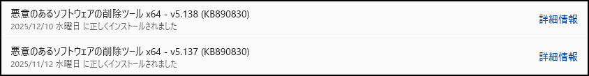 Windows11に標準で搭載している「悪意のあるソフトウェア削除ツール」(MSRT)は、Windows Updateで毎月更新されます。