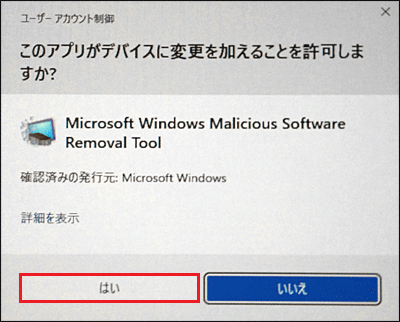 🥉手順②:ユーザーアカウント制御が表示されましたら【はい】をクリックします。
