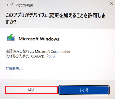 🥉手順⑬:ユーザーアカウント制御が表示されましたら【はい】をクリックします。