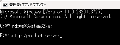 🥉手順⑫:コマンドプロンプトに、半角英数字で【setup /product server】と入力し、キーボードの【Enter】キーを押します。