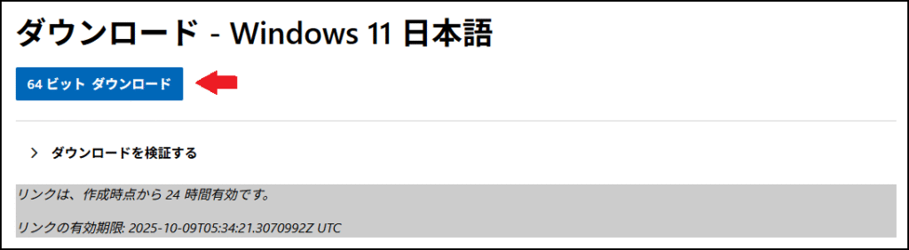 🥉手順④:『ダウンロード-Windows11日本語』の画面が表示されましたら【64ビット ダウンロード】をクリックします。