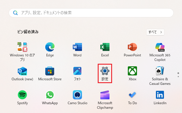 🥉手順②:スタートメニューが表示されましたら【設定】を選択します。