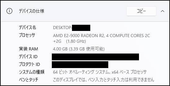 ★CPU:AMD:E2 9000(1.8GHz・2コア)