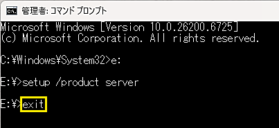 🥉手順⑬:『Windows Serverセットアップ』の画面が表示されましたら、コマンドプロンプトに【exit】と入力し、キーボードの【Enter】キーを押して、コマンドプロンプトを終了します。
