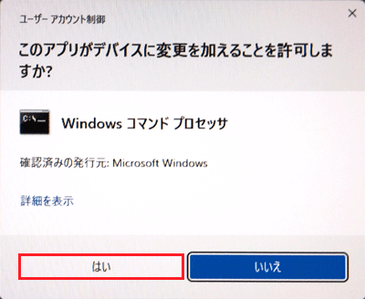 🥉手順⑩:ユーザーアカウント制御が表示されましたら【はい】をクリックします。