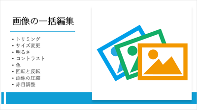 Microsoft Office Picture Manatgerは、複数の画像を一括で編集または加工することができる便利な機能を備えており、画像編集の作業効率がアップします。