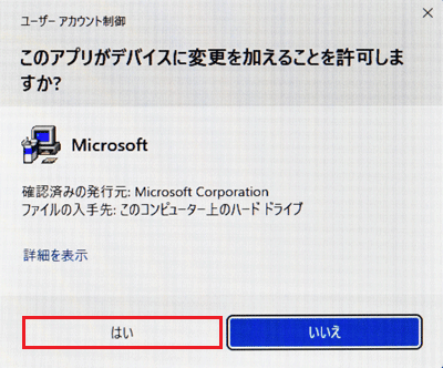🥉手順②:『ユーザーアカウント制御』が表示されましたら【はい】をクリックします。