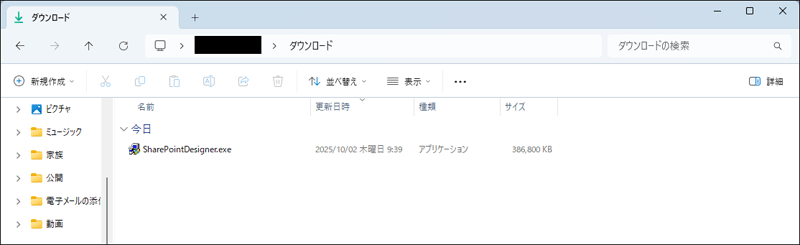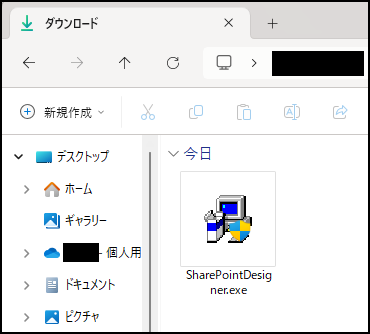 ダウンロードした「Microsoft SharePoint Designer 2010」の実行ファイルは自動的にダウンロードフォルダーに保存されます。