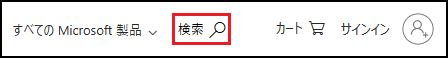 🥉手順①:Microsoftの公式サイトにアクセスしましたら、グローバルメニューから【検索】を選択します。