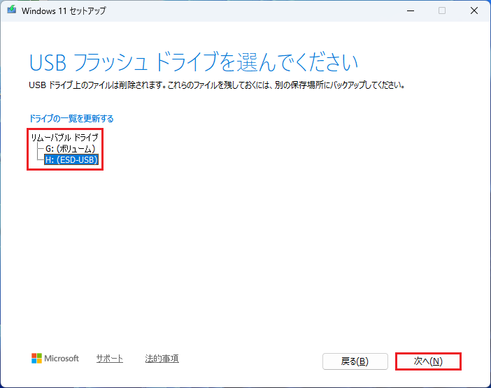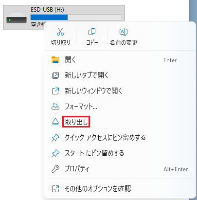 ■今回は例として、H:(ESD-USB)を選択しています。