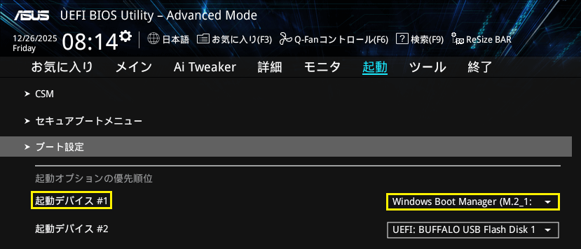 ✨起動デバイスの順番を変更してWindows11をインストールする