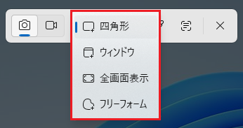 Snipping Toolのキャプチャーバーで『切り取り領域』を変更することもできます。