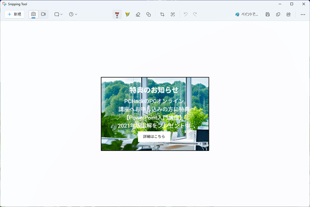 Snipping Toolで、スクリーンショットを撮った場合は、画像の周囲に枠がありません。
