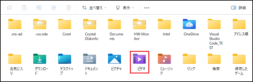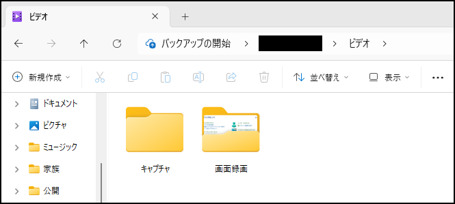 画面録画の保存先は「ビデオ」フォルダー配下の「画面録画」フォルダーに保存されます。