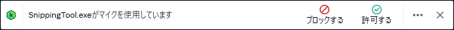 🥉手順⑥:「Snipping Tool.exeがマイクを使用しています」のポップアップ画面が表示されましたら【ブロックする】+【許可する】のいづれかを選択します。