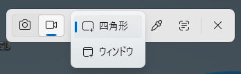 🥉手順④:レコーディング領域の一覧から【四角形】または【ウインドウ】を選択します。
