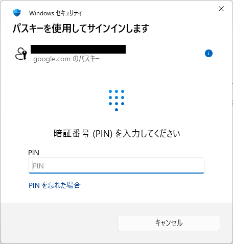 パスキーで、PINを使用した認証方法は、会社や複数人で使用する共用PCには向いていません。
