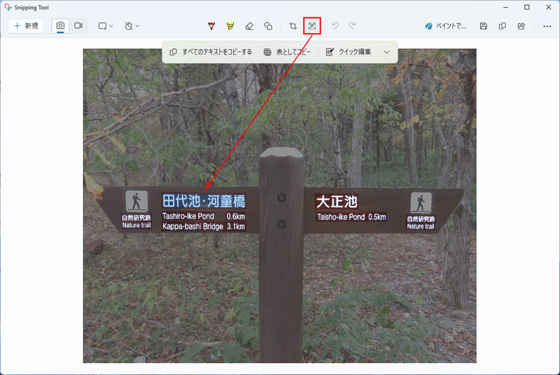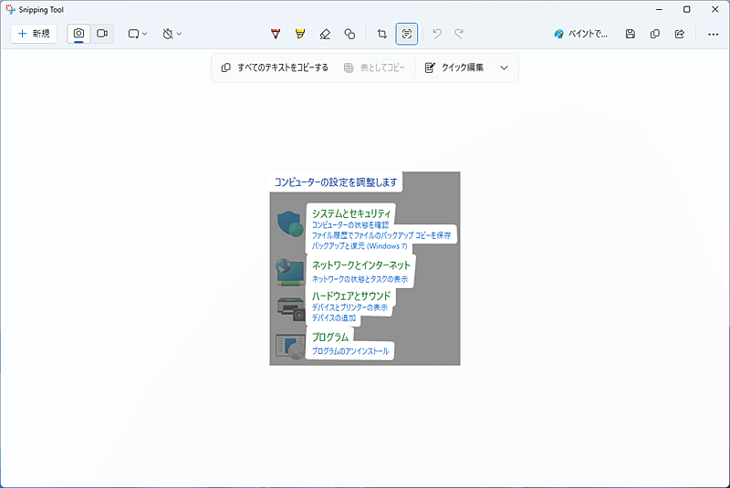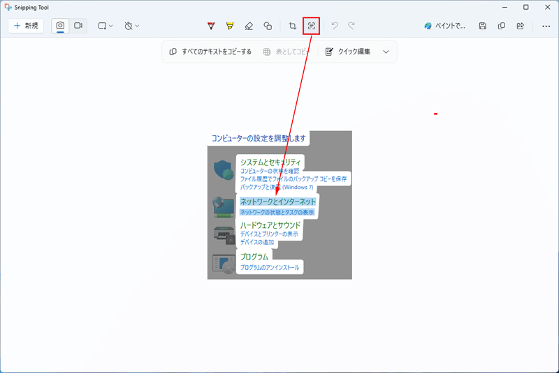 Snipping Toolには「テキストアクション」と呼ばれるOCR機能があり、スクリーンショット画像から文字を抽出してテキストに変換することができます。