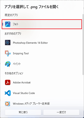 フォトアプリを選択しましたら「常に使う」または「一度だけ」のいずれかを選択します。