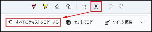 🥉手順⑥:すべてのテキストを抽出する場合は、Snipping Toolの編集画面の上部メニューから『テキストアクション』を選択し【すべてのテキストをコピーする】を選択します。