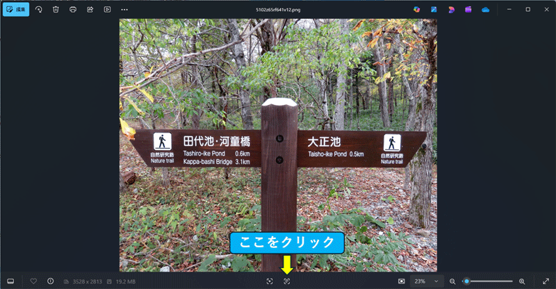 🥉手順③:フォトアプリで画像や写真を開きましたら、ビューワーウィンドウの下部中央の【テキストのスキャン】をクリックします。