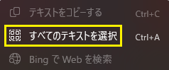 ■「すべてのテキストをコピーする」を選択すると、スクリーンショット画像の文字列がすべて選択されます。