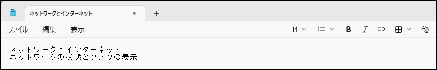 メモ帳の『ファイル』タブを選択して、テキストファイルとして保存しておきます。