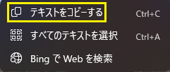 メニューの一覧から【テキストをコピーする】を選択しましたら、手順⑦へ進みます。